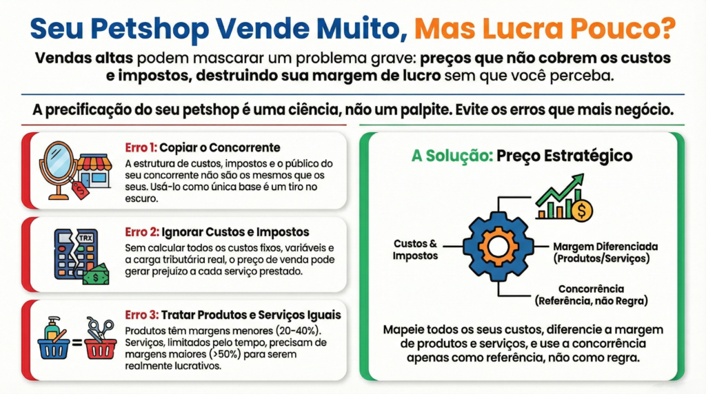 Nesse cenário, erros na precificação para petshops costumam acontecer por três motivos principais: